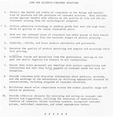 Read the code for business - consumer relations published by the Better Business Bureau in the early 1960's.